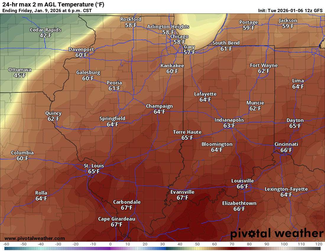 Today’s high of 62° occurred just after 1 AM. Lows in the Mid 30s tonight. Showers return tomorrow. If rain lingers late enough, it MAY briefly mix with snow in the evening. We’ll remain mostly warmer than average until Mid Next Week, Then Winter may return. Watching the track of a storm next weekend for possible accumulating snow. Right now, data has the snow path to our Southeast. However, the pattern indicates data should come Northwest over the next few days. We’ll see how things look early in the week. #MadCoWx #INwx