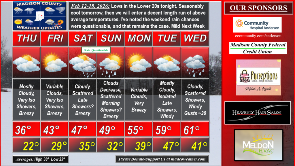 Lows in the Lower 20s tonight. Seasonably cool tomorrow, then we will enter a decent length run of above average temperatures. As I’ve noted in past forecasts, the weekend rain chances would be questionable, and that remains the case. We should be Very Mild Next Week. Longer term, the Stratospheric Polar Vortex is being squeezed to the Northeast of the United States, and the core is moving over Asia. The Tropospheric PV will lag that by 2-3 weeks. So, a couple more cold shots remain possible into early March but, IMO all Winter bets may be off by mid March. #MadCoWx #INwx